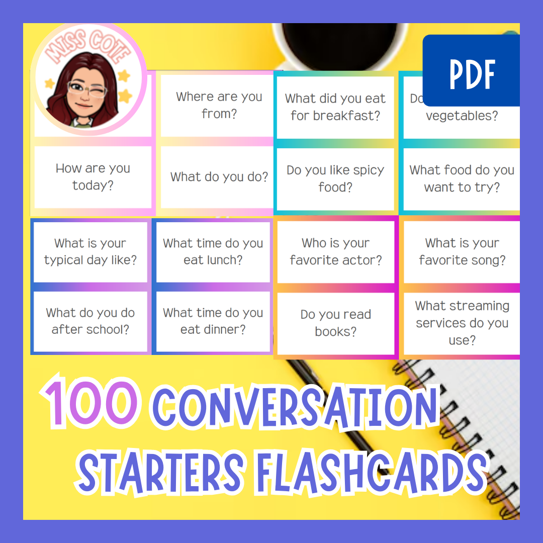 100 Conversation starter flashcards (A1-A2)