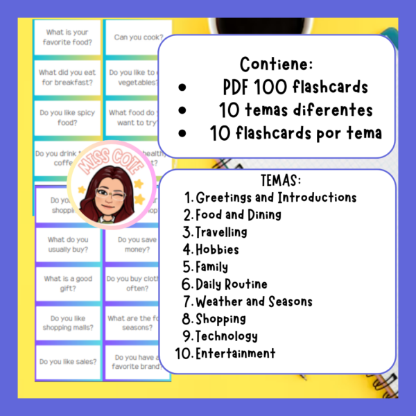 🍎 100 Conversation Starter Flashcards de nivel A1-A2.