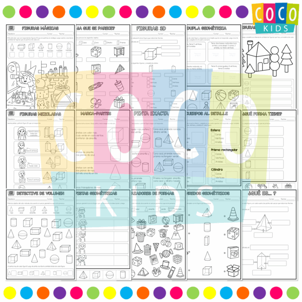 en el dibujo las figuras 3D, contarlas y escribir su nombre.