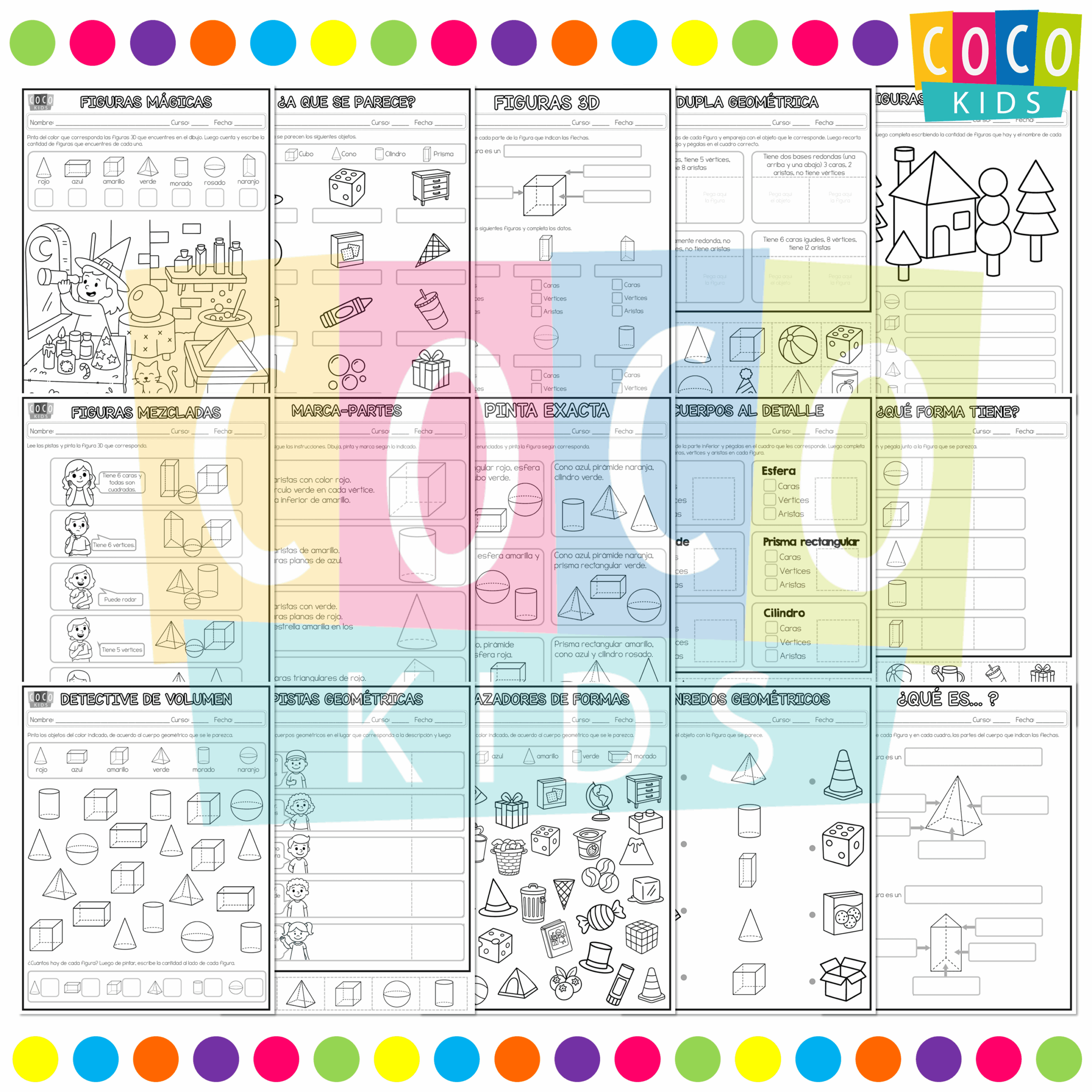en el dibujo las figuras 3D, contarlas y escribir su nombre.