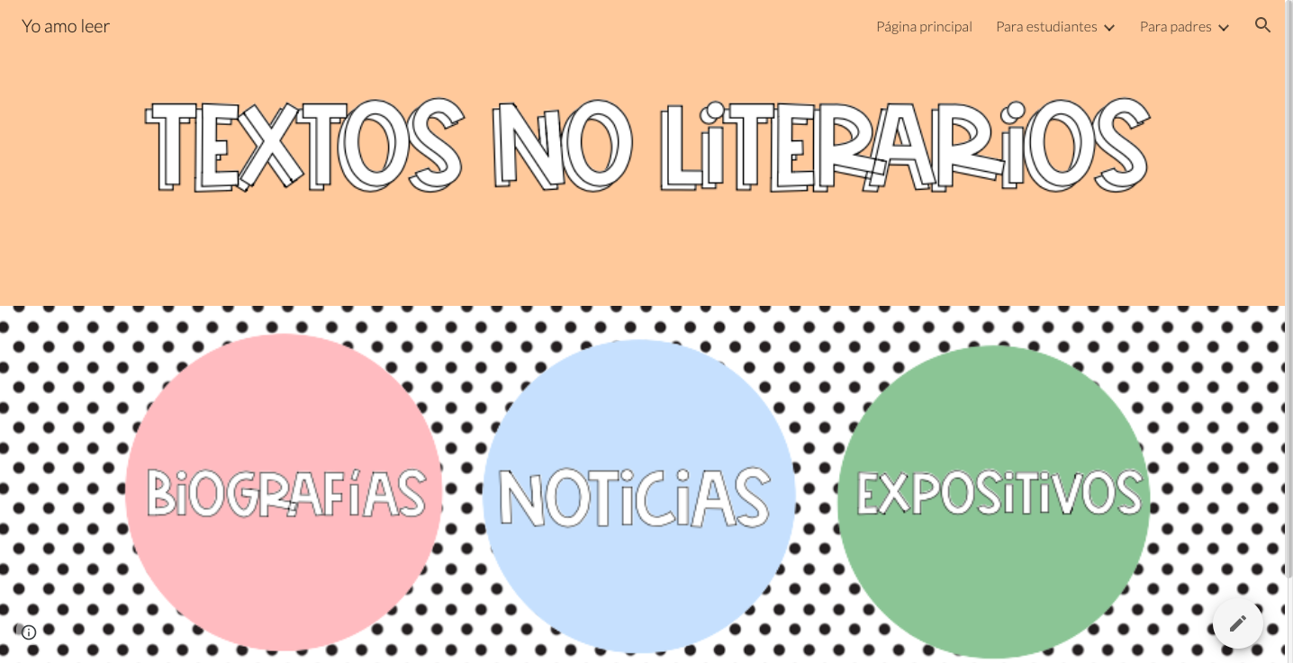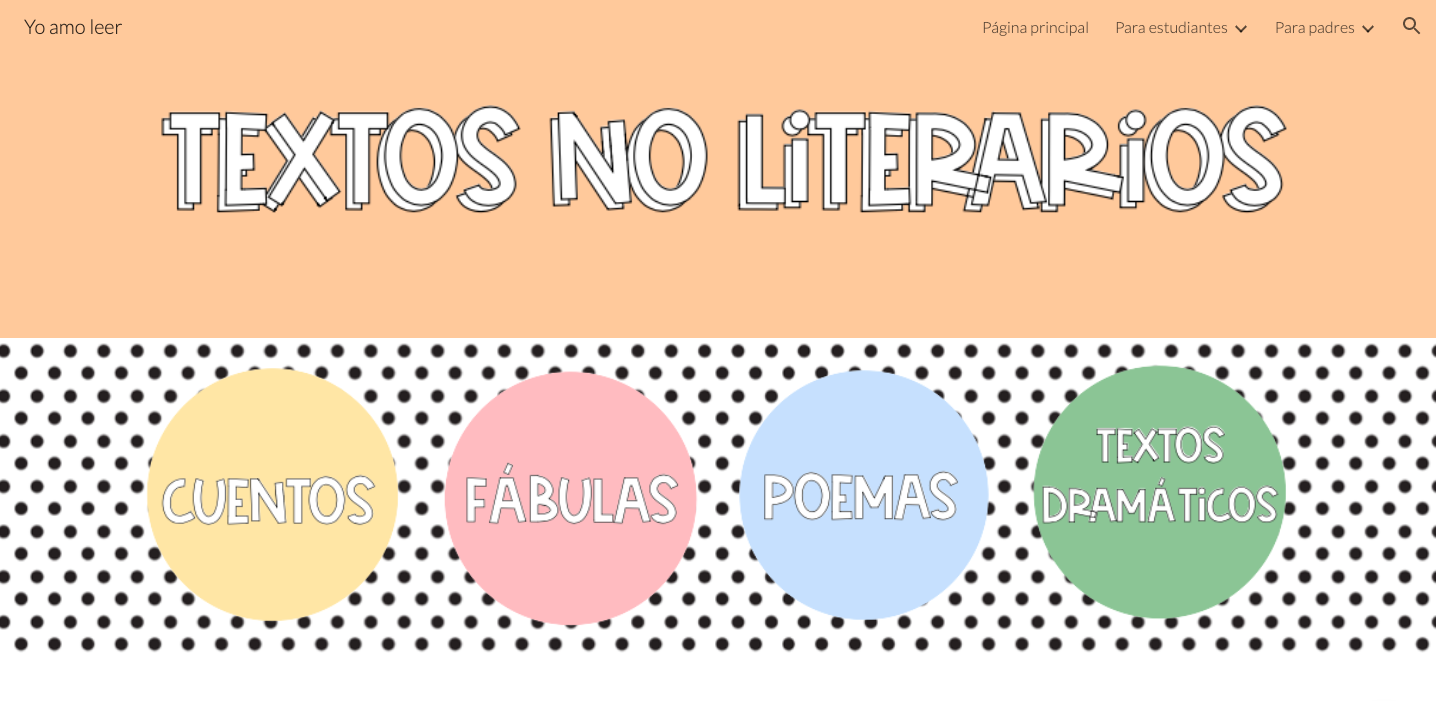 - La sección para los estudiantes consta de la sección de textos literarios: cuentos, fábulas, poemas y textos dramáticos. Sección textos no literarios: biografías, noticias y textos expositivos.