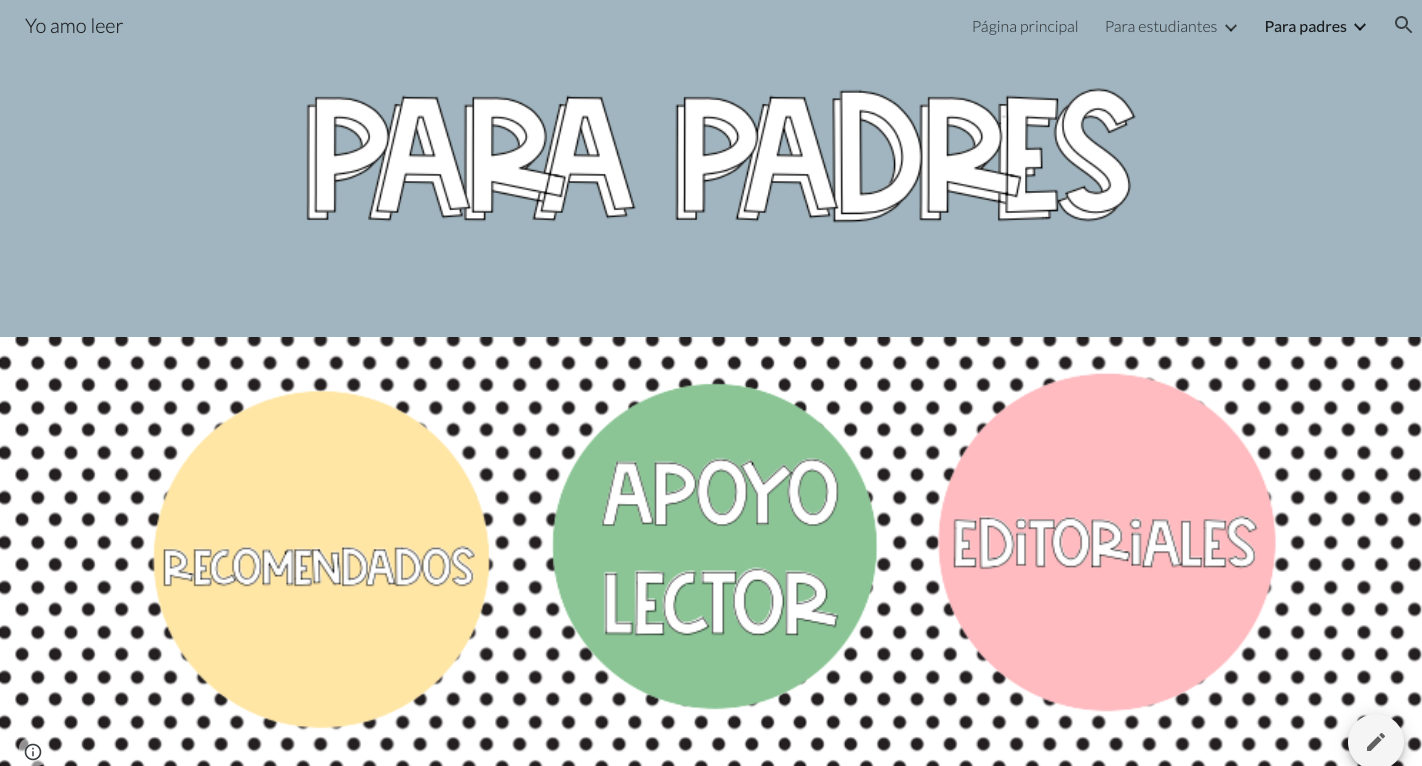 - La sección para las familias tiene tres apartados: recomendaciones literarias, apoyo lector y editoriales. La primera incluye un documento PDF con recomendaciones literarias, el segundo un set de documentos para apoyar la lectura en casa y el tercero una selección de algunas de las mejores editoriales y librerías de Chile para adquirir libros.