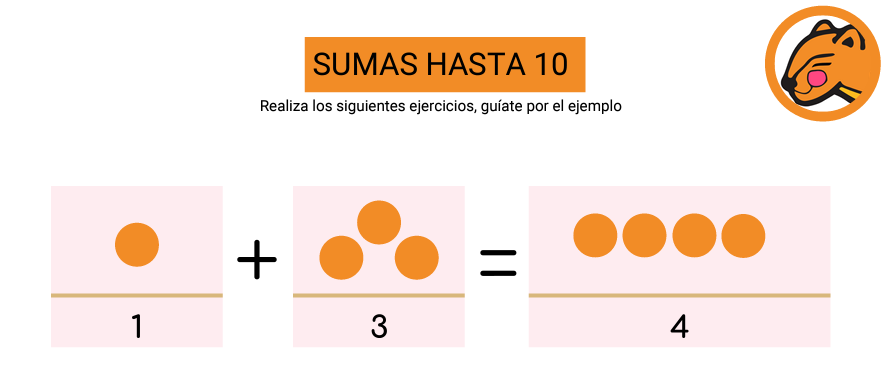 7 EJERCICIOS DE SUMAS HASTA EL 10, DE MANERA HORIZONTAL, CON APOYO PICTÓRICO Y GRÁFICO, MÁS UN EJEMPLO. IDEAL PARA 1° BÁSICO O PARA ESTUDIANTES QUE ESTAN APRENDIENDO LAS SUMAS.