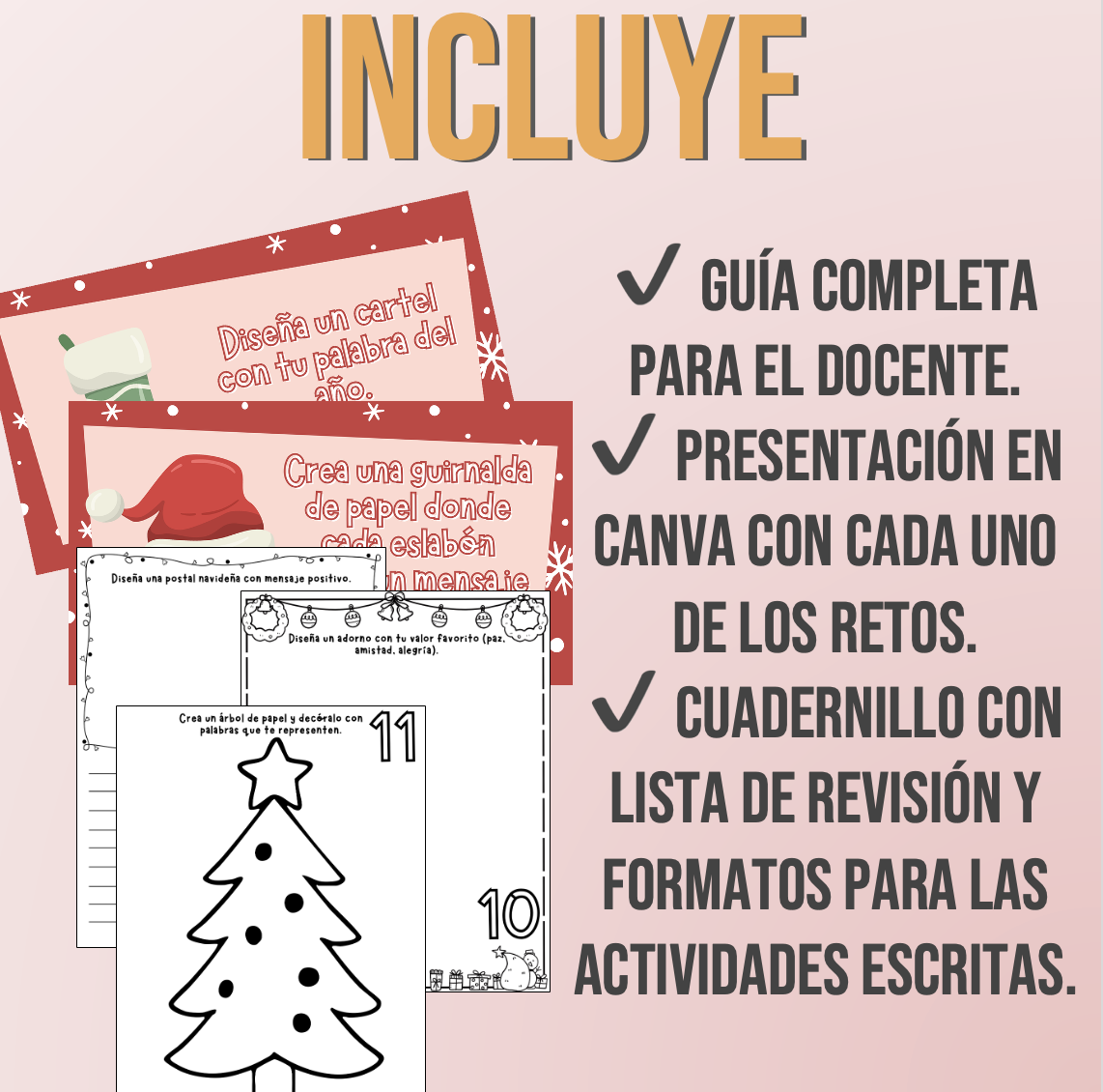 ✔️Cuenta regresiva navideña: empieza 12 días antes del receso escolar y realiza una actividad diaria.