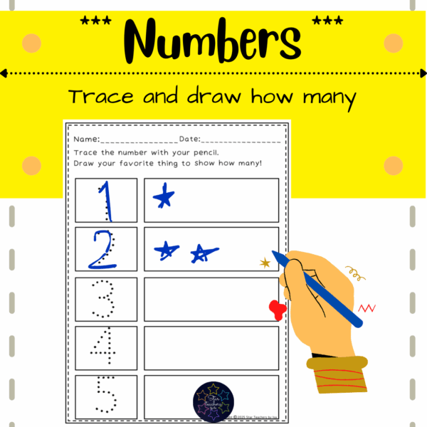 Habilidades: Trazar números, dibujar, contar, reconocimiento numérico, desarrollo de la motricidad fina.