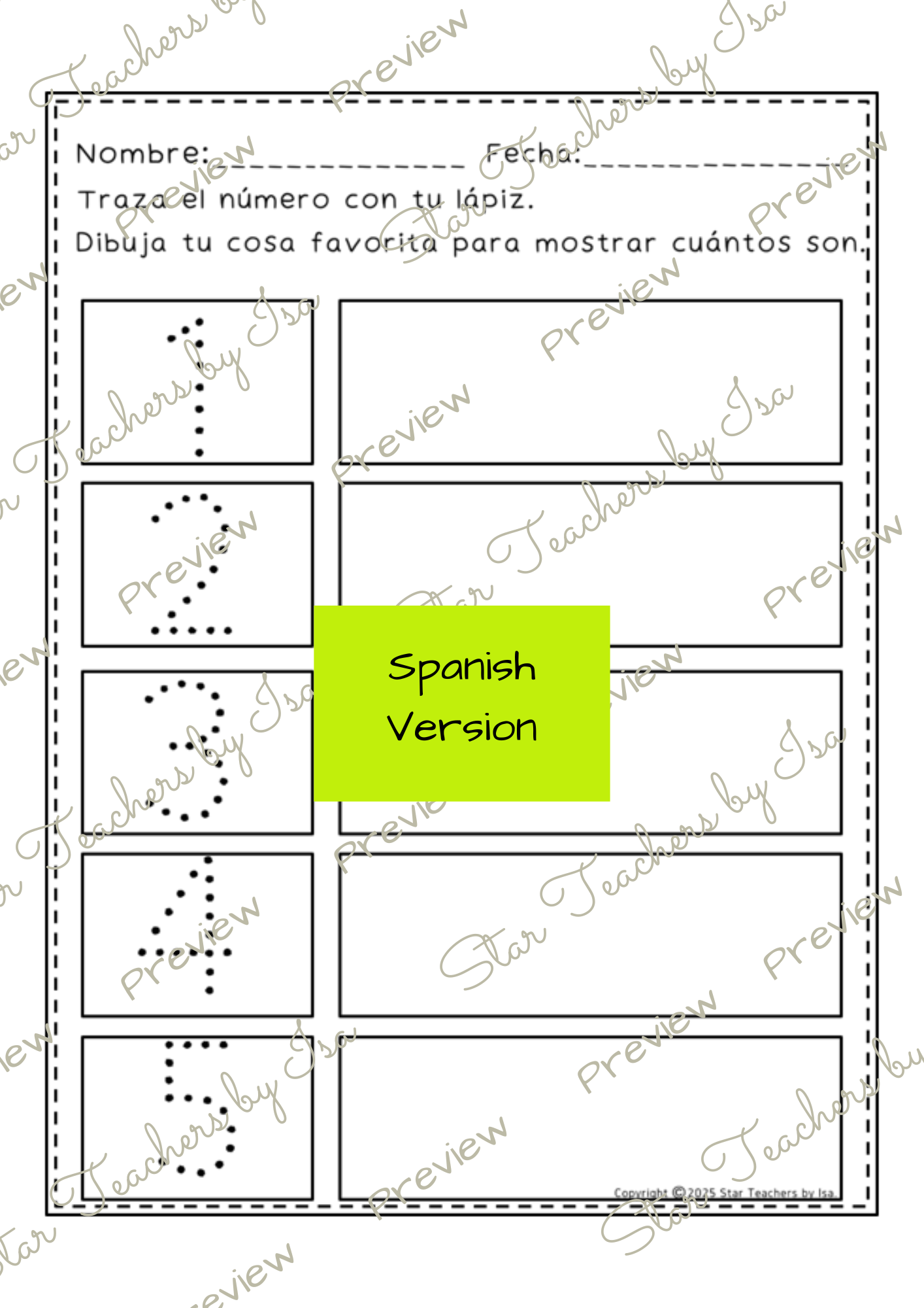Habilidades: Trazar números, dibujar, contar, reconocimiento numérico, desarrollo de la motricidad fina.