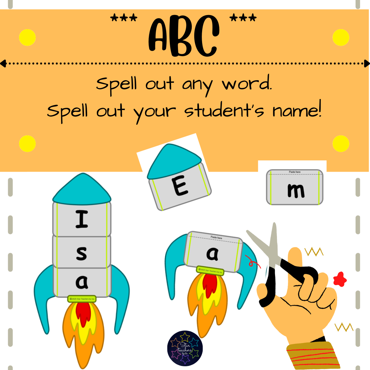 ¡Dale vida a la práctica de ortografía y deja que los estudiantes formen palabras con estas coloridas letras de cohete!