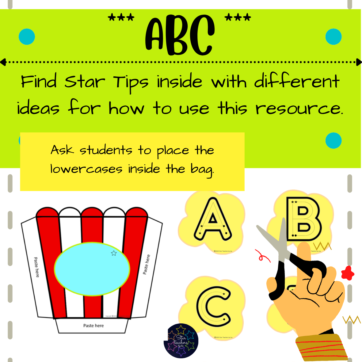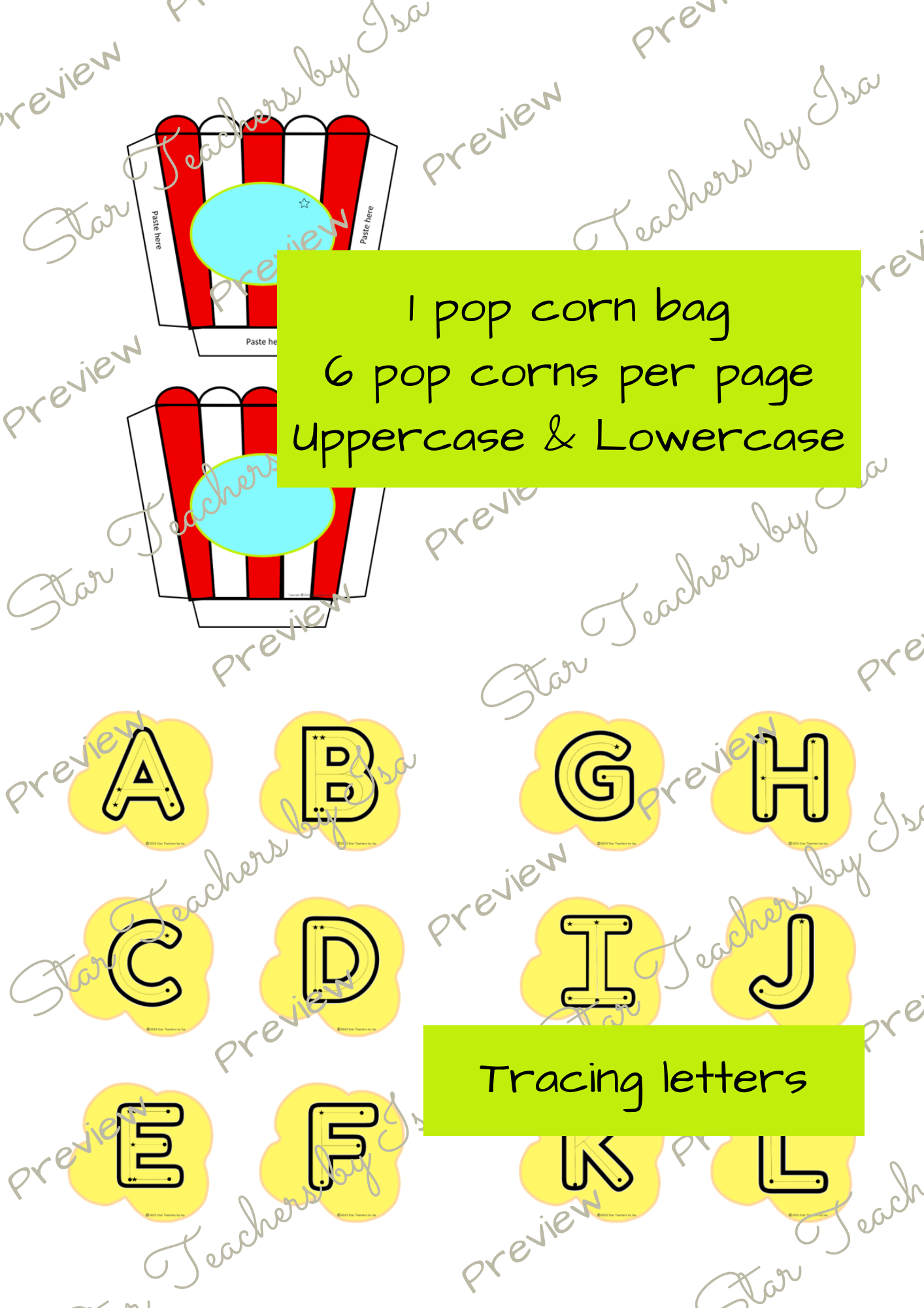 ¡Haz que el aprendizaje de las letras sea interactivo y divertido—descarga hoy la bolsa de palomitas del alfabeto!