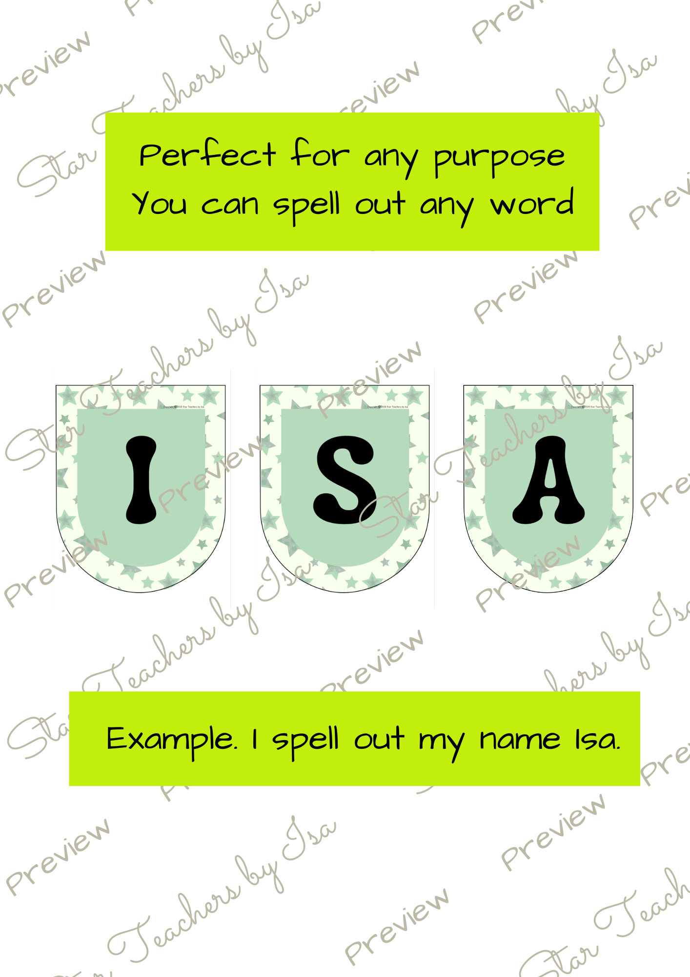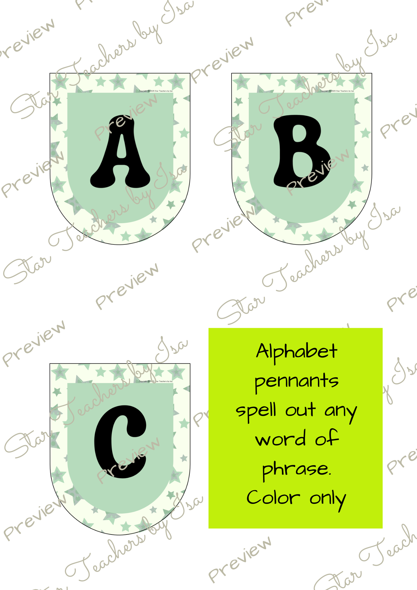 La sección de Star Tips comparte ideas adicionales—úsalos para banderines con los nombres de los estudiantes, frases de temporada, murales de palabras de alfabetización o encabezados de tableros de cumpleaños.