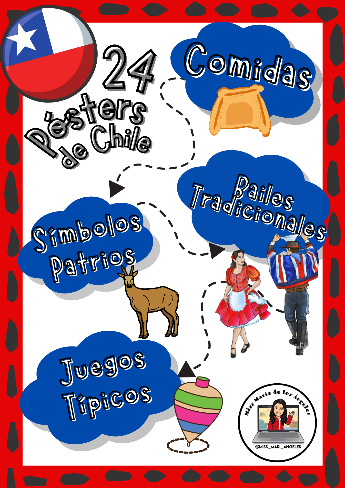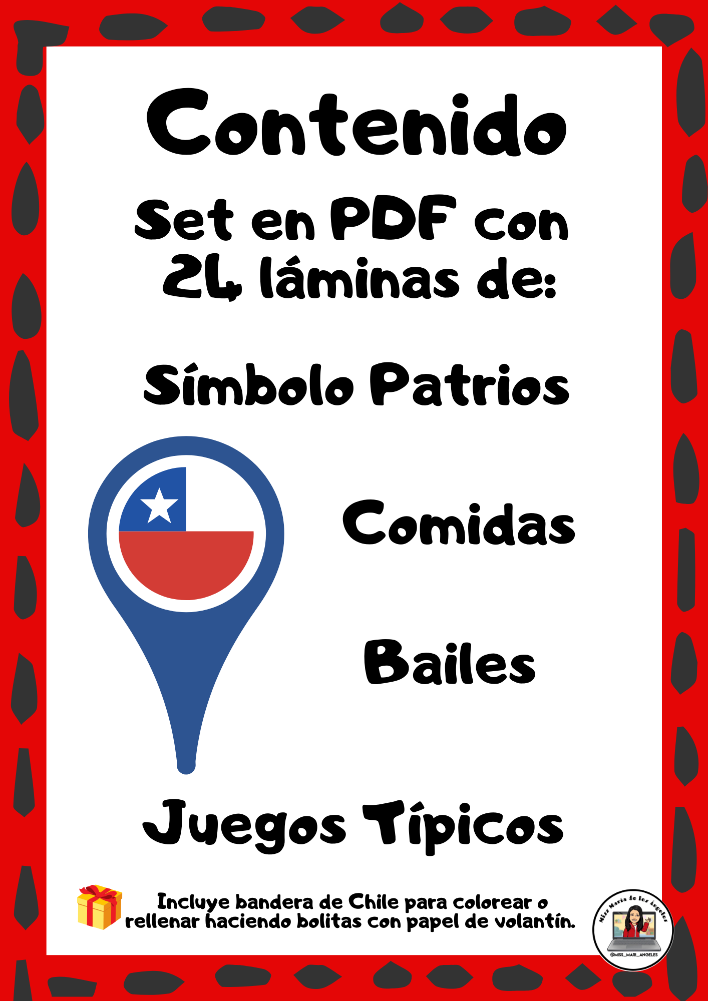 • 24 pósters de comidas, bailes, símbolos patrios y juegos típicos.