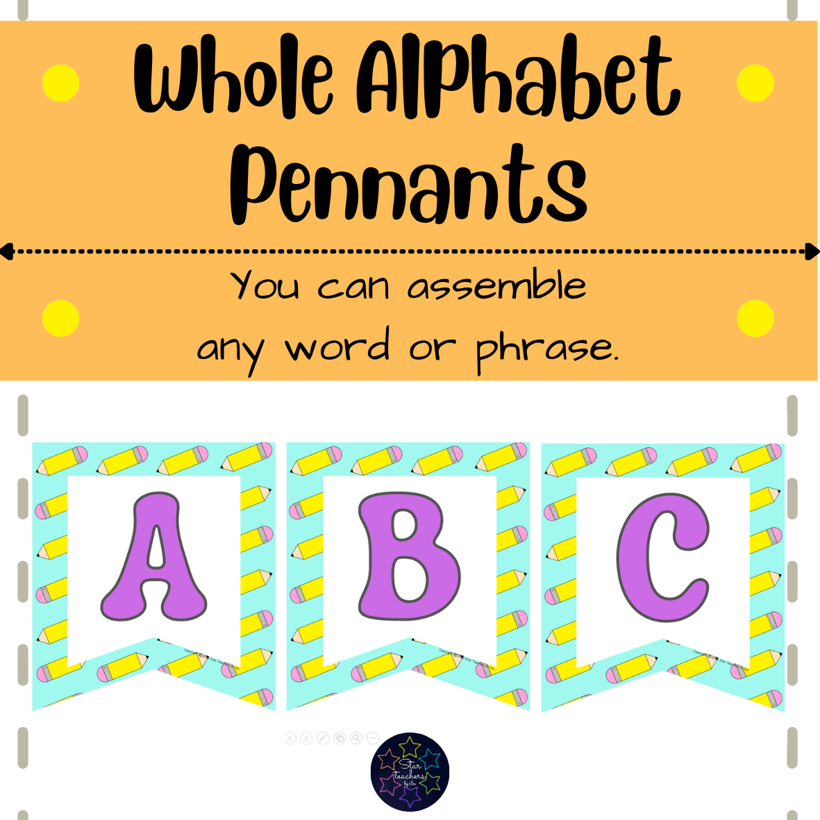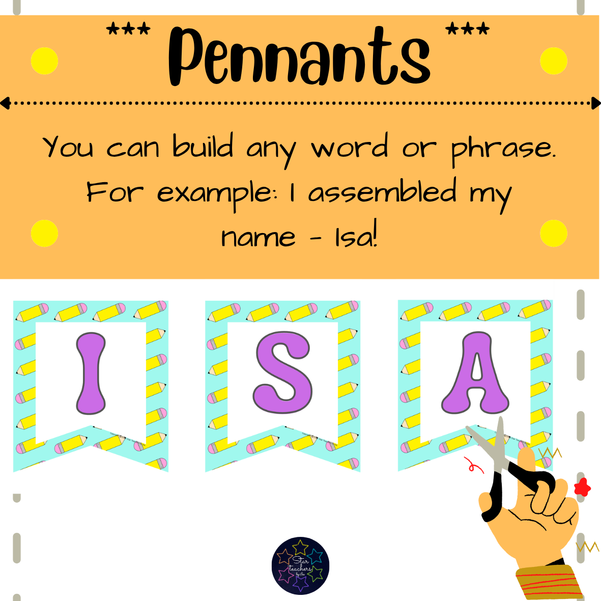 La sección de Star Tips comparte ideas adicionales—úsalos para banderines con los nombres de los estudiantes, frases de temporada, murales de palabras de alfabetización o encabezados de tableros de cumpleaños.