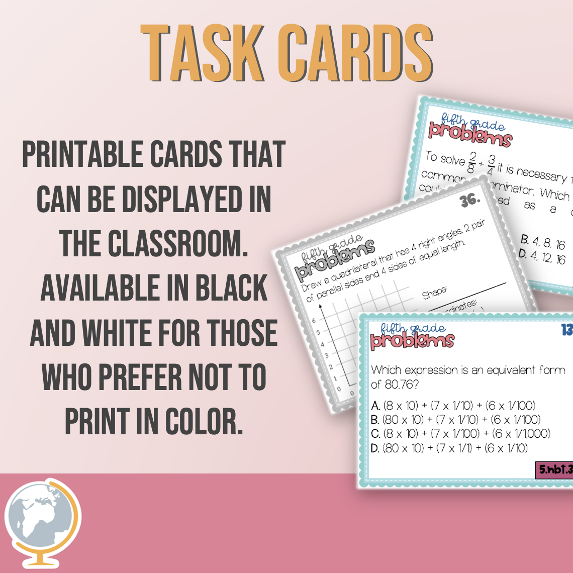 - Task Cards – Printable cards (black & white version included) to display in the classroom.