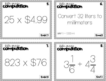 5th Grade Math review EOG Preparation Computation Problems