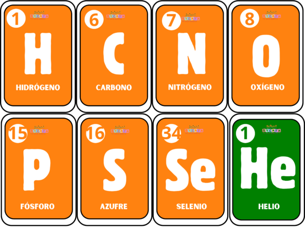 Jugador uno: lanza una carta y debe decir si su carta representa un elemento o compuesto. Dependiendo de su carta, el proximo jugador deberá lanzar un elemento o compuesto y continuar así hasta que salga una carta comodín de:
