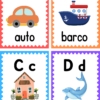 Abecedario con mayúsculas y minúsculas. Cada letra con imágenes de referencia.
