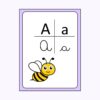 Diseño de abecedario con 27 tarjetas en letra ligada e imprenta, donde cada una tiene su imagen respectiva para acompañar la comprensión de cada grafema y fonema, de tal manera, que se facilite el proceso de aprendizaje de la lectura y escritura.