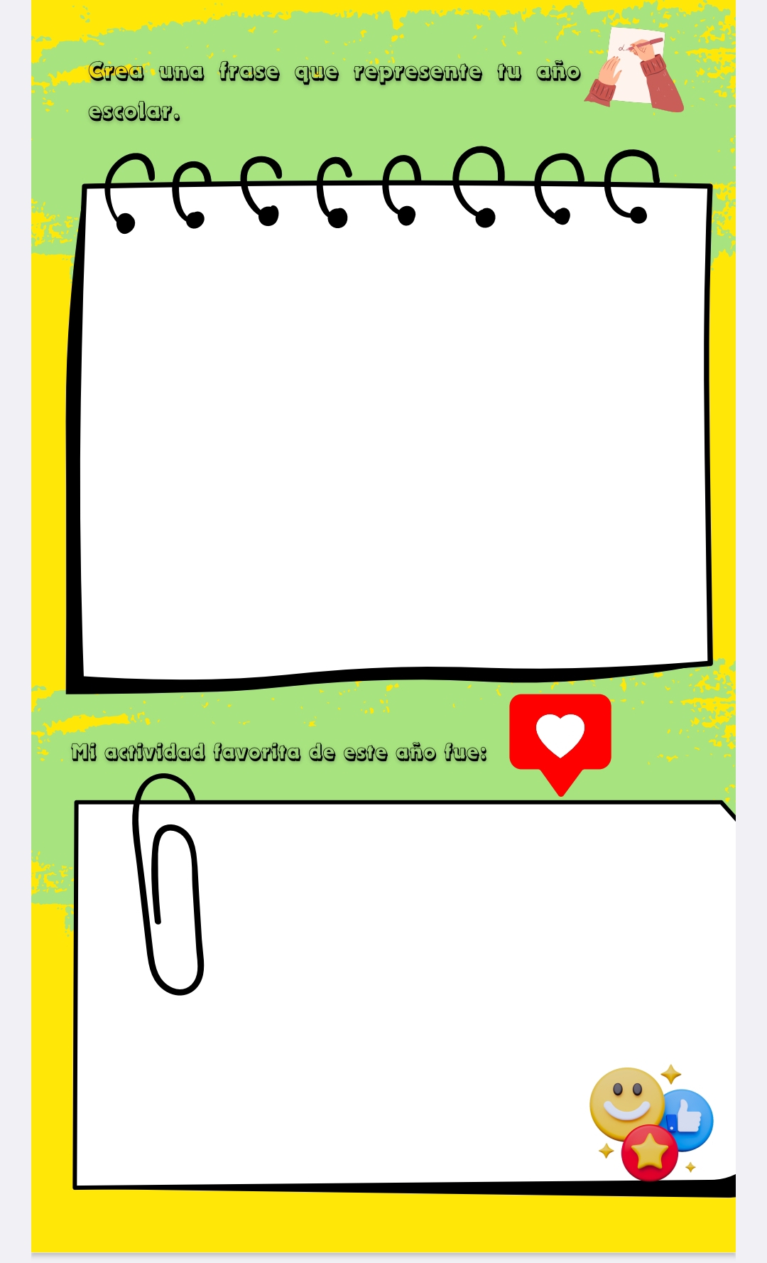 Hola querida comunidad! En esta oportunidad quiero compartir un PDF con actividades para cerrar el año, contiene por ejemplo pegar fotografía con persona especial 2023, crear una frase, crear una carta de despedida para este año, escribir que fue lo mejor de este año, entre otros!