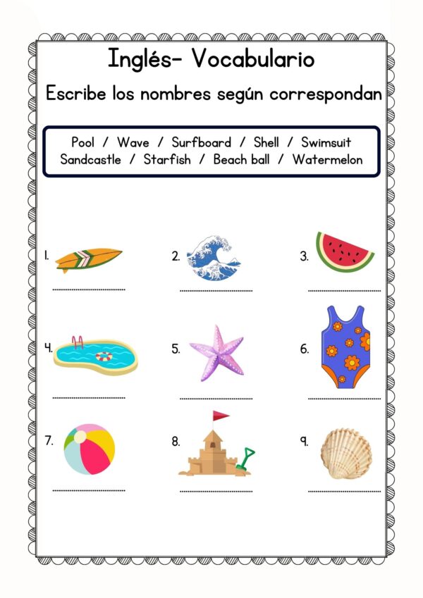 Actividades de verano-Inglés