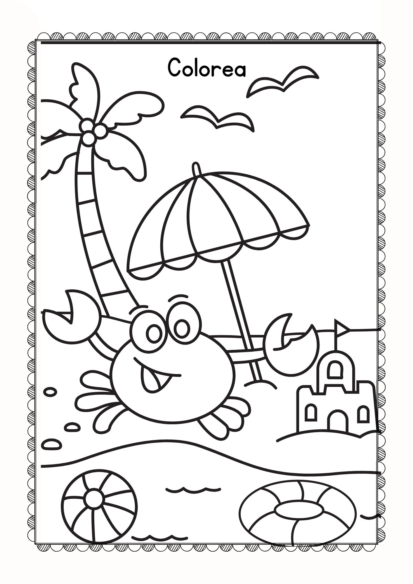 Este cuadernillo tiene más de 40 actividades para realizarlas durante el verano, como colorear diferentes dibujos, ejercicios de atención, de contar, de laberintos, sopa de letras, de relación, singular y plural, completar imágenes dibujando la mitad que falta, realizar acróstico y juego de memoria, todos relacionados al verano.