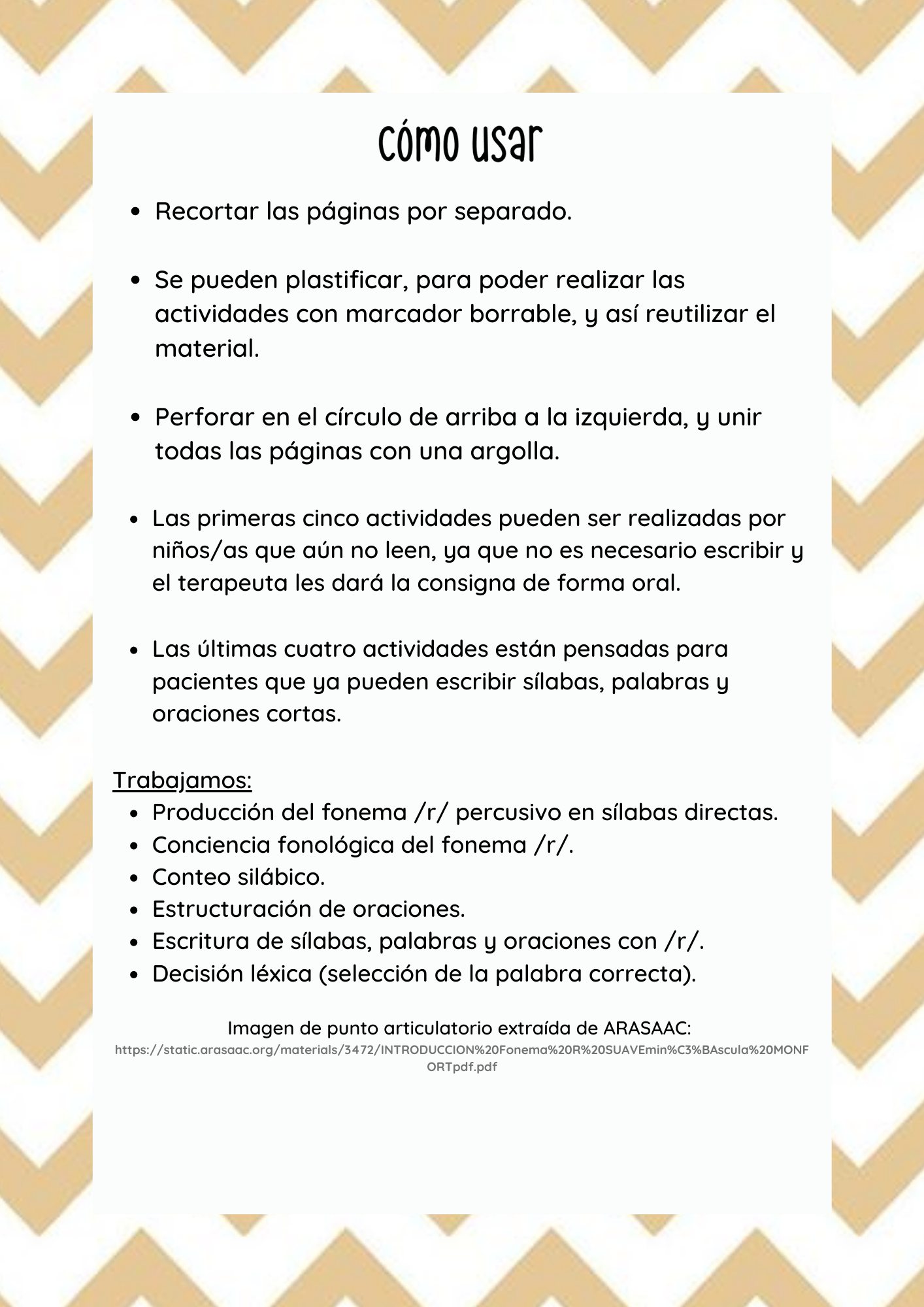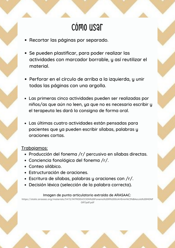 Actividad en formato de “librito” para trabajar la producción y conciencia del fonema “R” percusivo en posición intervocálica.