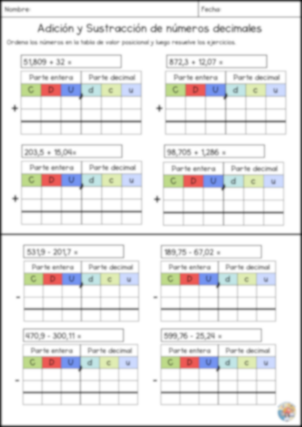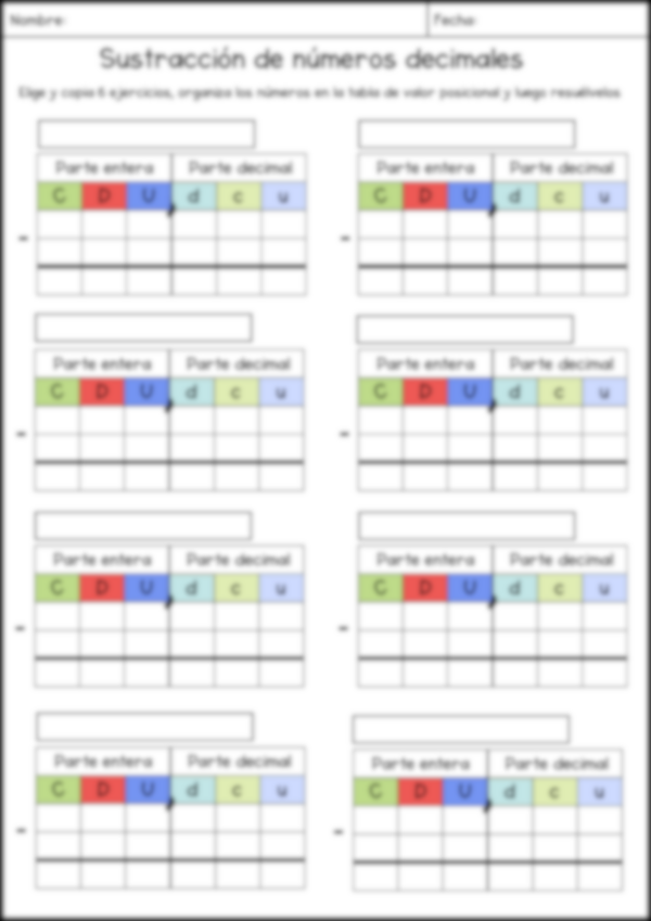 - 3 hojas de práctica para completar ejercicios en tabla de valor posicional (multicopiar)