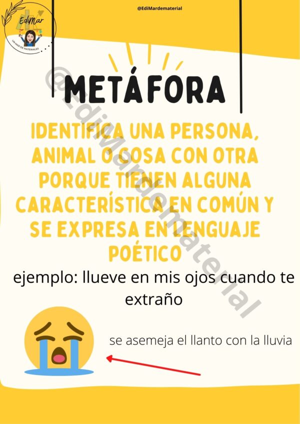 Incluye 1 lámina de cada figura literaria en la que tiene una descripción, un ejemplo gráfico acompañado de una imagen:
