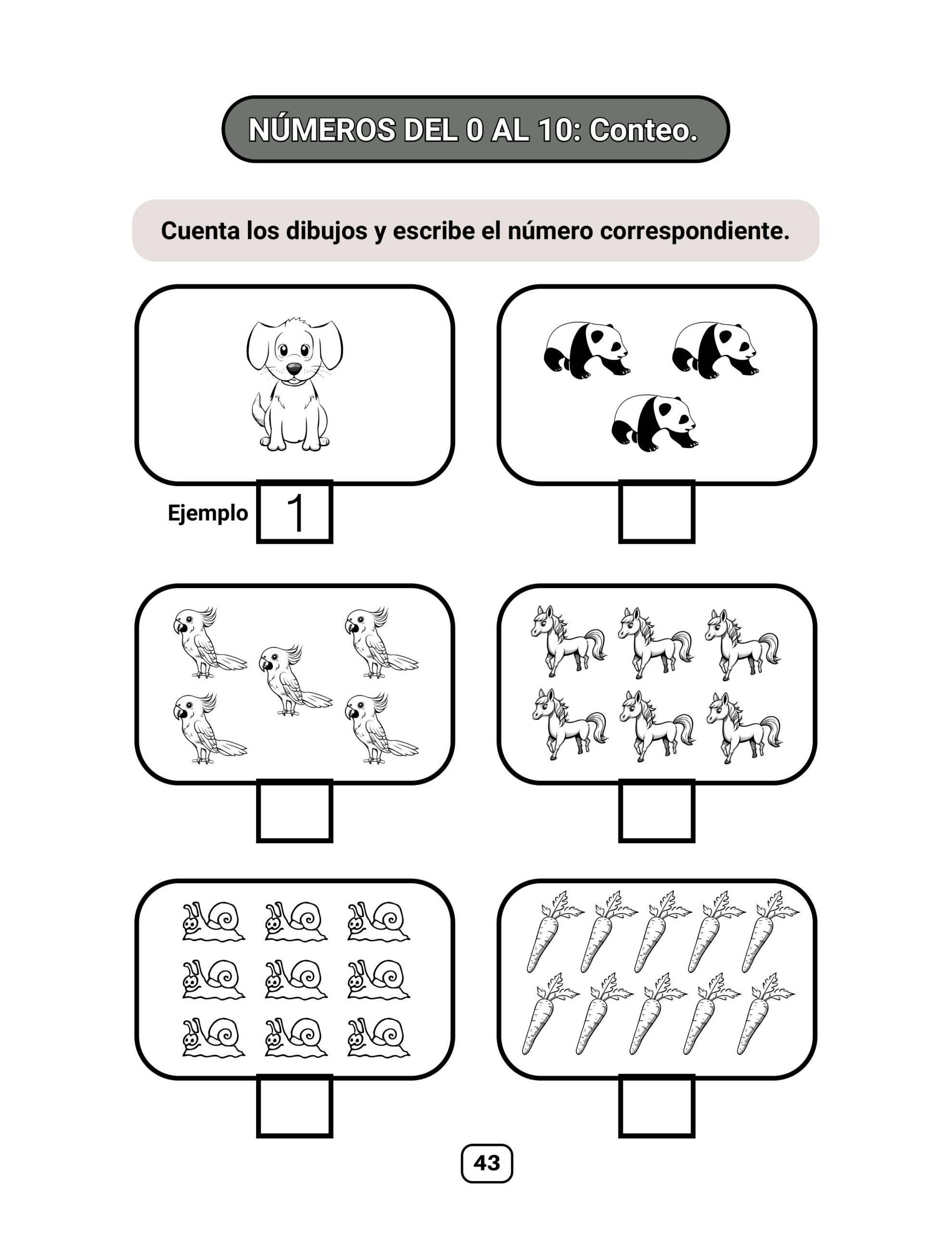 Conteo y escritura del número que corresponde.