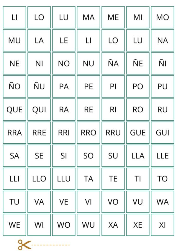 - Texto Grande y Legible: Las sílabas y palabras están impresas en un tamaño de letra grande y claro, adecuado para facilitar la lectura.