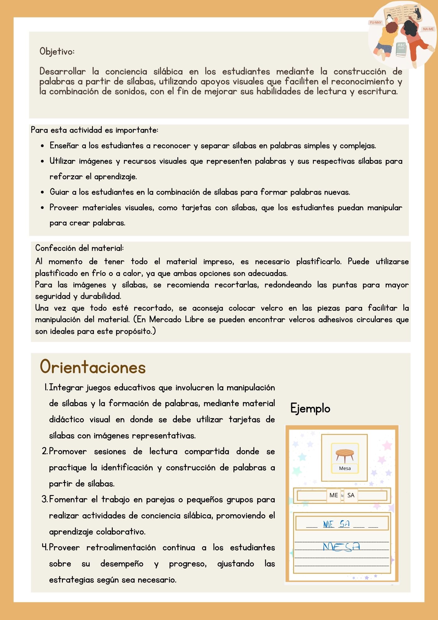 - Desarrollo de la Conciencia Silábica: Ayuda a los estudiantes a entender y manipular las sílabas en las palabras.