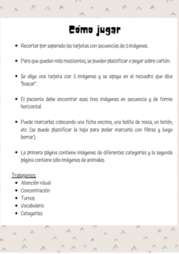 Actividad para trabajar atención, concentración, turnos, vocabulario.
