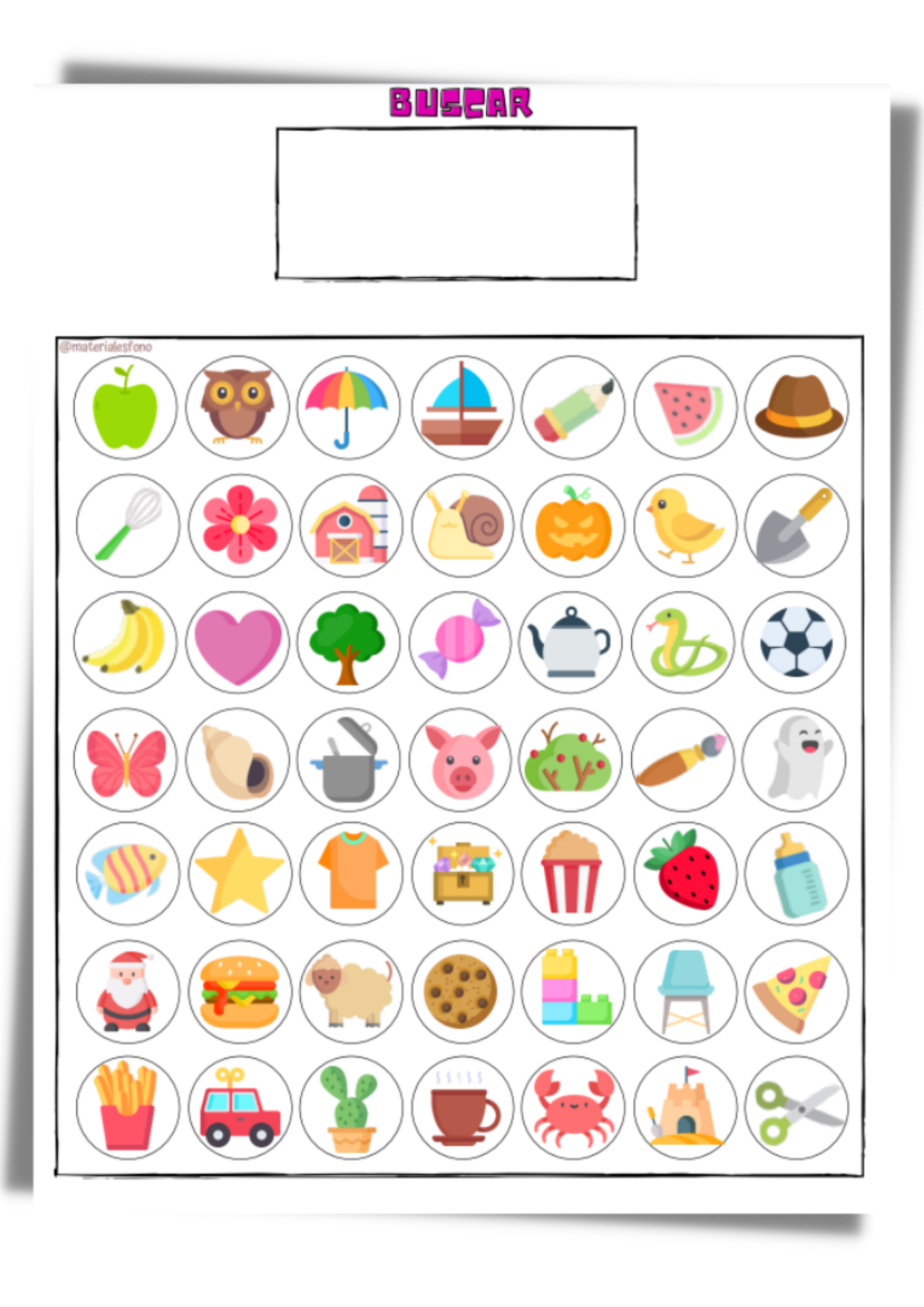 - 24 fichas con una secuencia de 3 imágenes que cada niño/a deberá buscar.