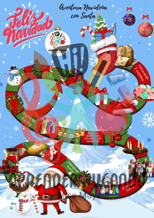 - ✔️ 1 Tablero de juego festivo y colorido con ilustraciones navideñas.