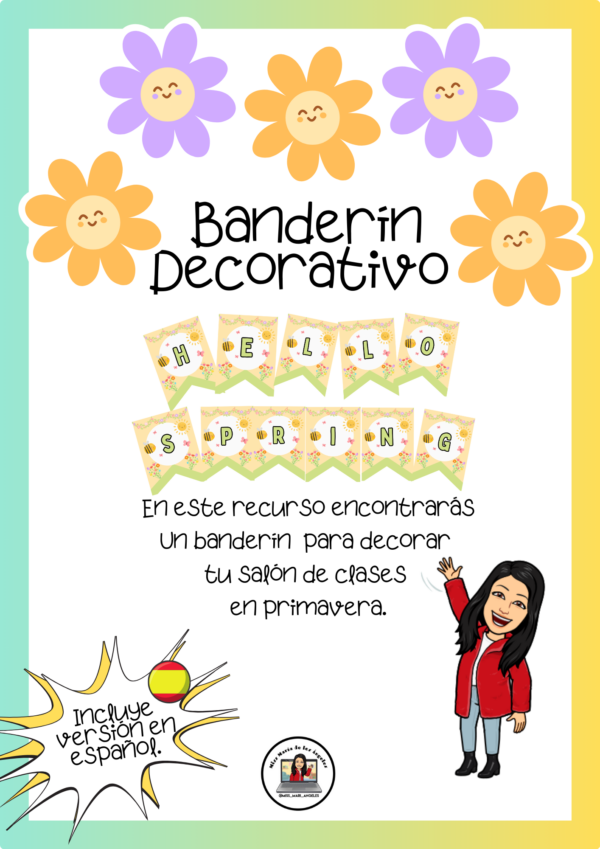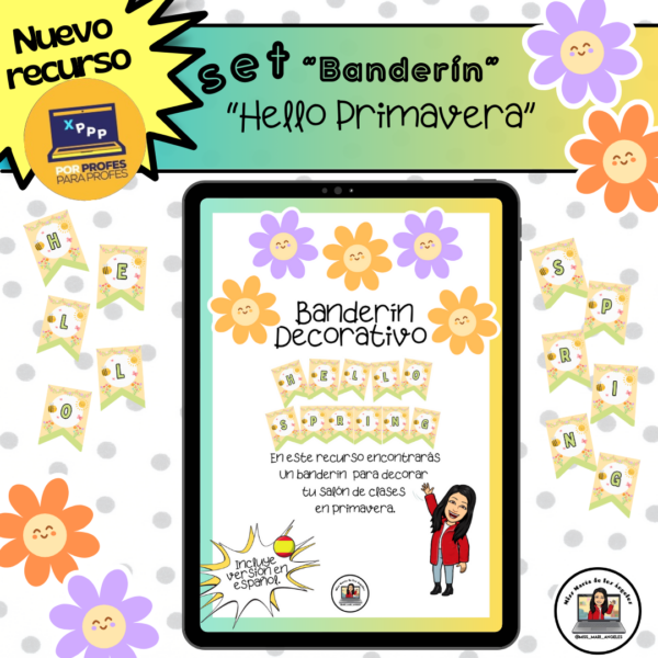 👍 En este recurso encontrarás un banderín decorativo con la frase “Hello Spring” (incluye versión en español)