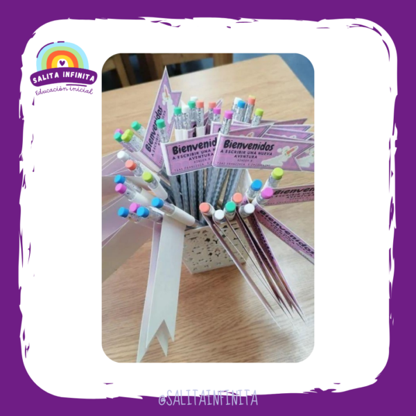 En este recurso podrás encontrar cuatro colores de banderín de bienvenida para poner al lápiz como regalo de inicio de clases para tus estudiantes.