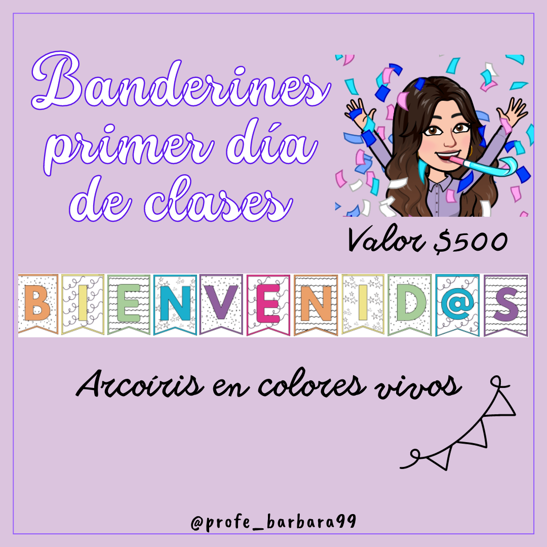 El día de hoy les quiero compartir un recurso que hice con la ayuda de Canva! Trata de un banderín que se puede utilizar para el primer día de clases, como manera de dar la bienvenida a tus estudiantes 💜