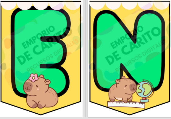 Da la bienvenida a tus estudiantes con llamativos banderines personalizados con la mascota tendencia “Capibara”.