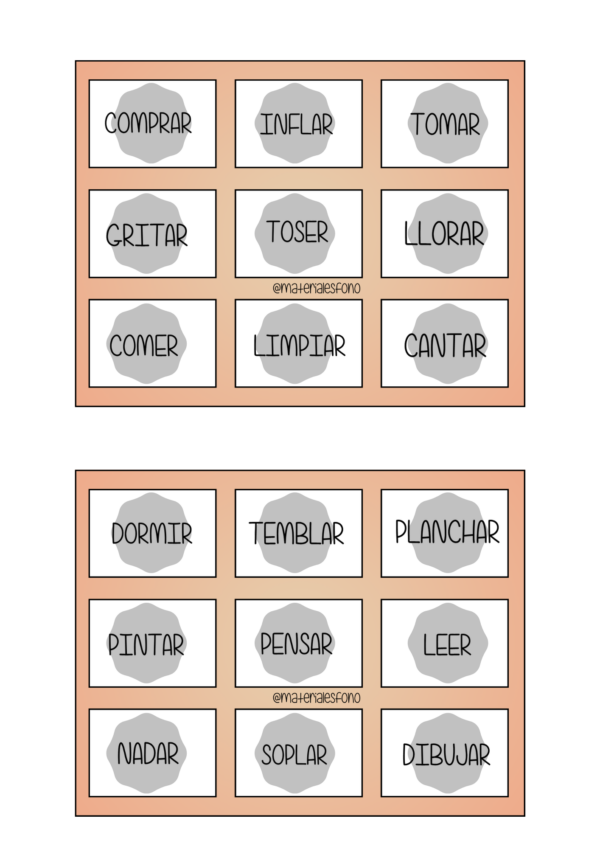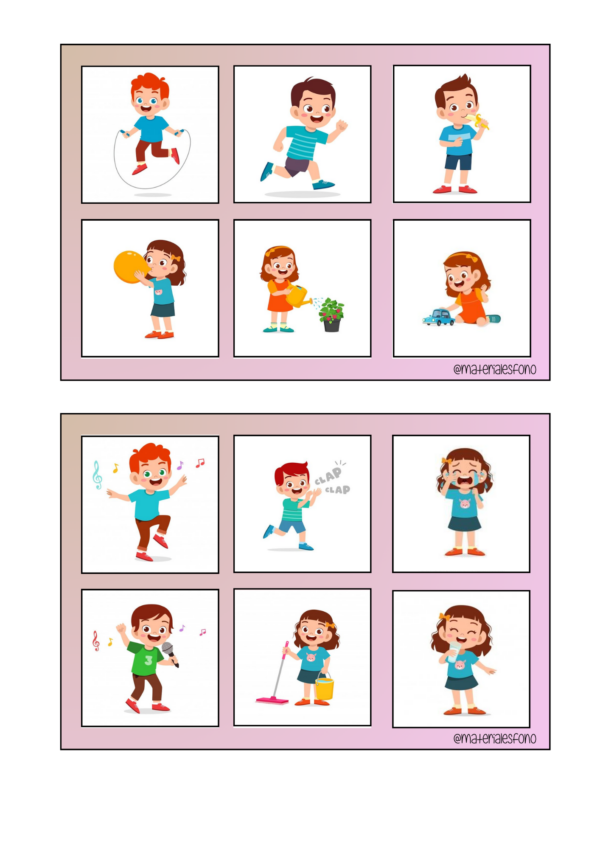 Actividad para trabajar la comprensión y el uso de verbos, las conjugaciones, sintaxis, estructuración de oraciones, lectura de palabras, atención y toma de turnos.