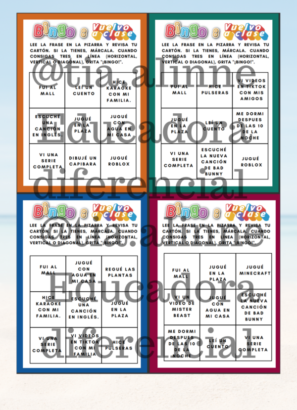 ✨ Para enriquecer la actividad, puedes hacer preguntas relacionadas con las frases del bingo, fomentando la conversación sobre sus vacaciones.