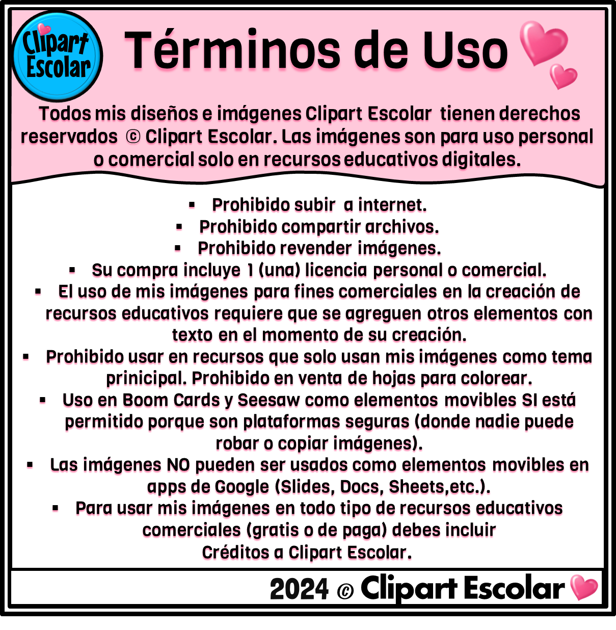 Todos mis diseños e imágenes Clipart Escolar tienen derechos reservados © Clipart Escolar. Las imágenes son para uso personal o comercial solo en recursos educativos digitales. Por favor lee los Términos de Uso en la descripción antes de comprar.