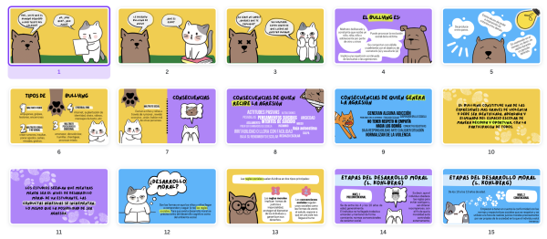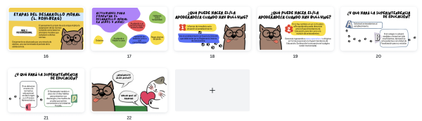 22 diapositivas que abordan el concepto de bullying, tipología, consecuencias, asociación con el desarrollo moral, actividades para fomentar la moralidad e indicaciones del MINEDUC en caso de Bullying.