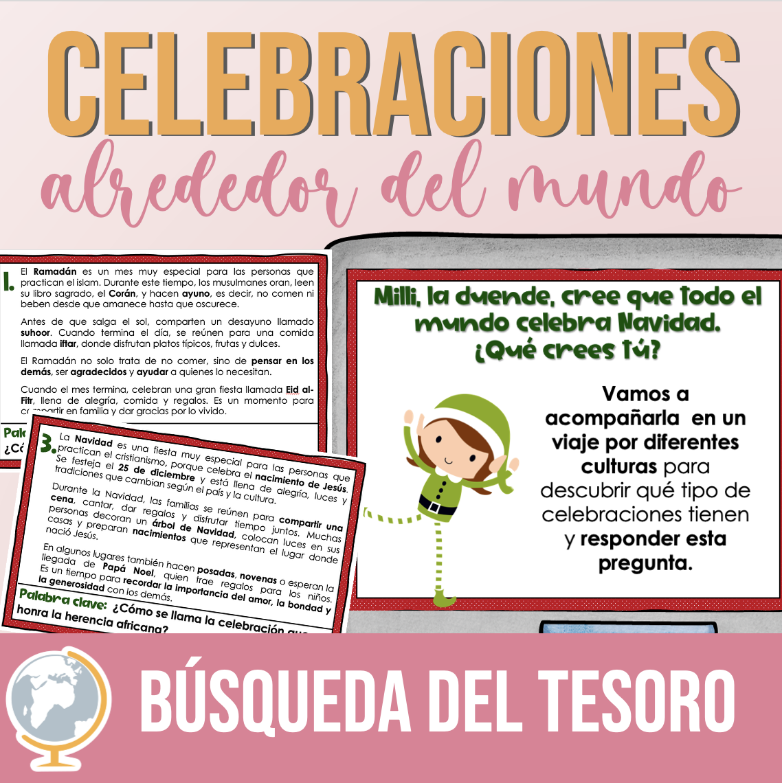 Diciembre puede ser un mes retador: los profes seguimos enseñando cuando la motivación empieza a flaquear. Esta Búsqueda del Tesoro sobre celebraciones del mundo ofrece una pausa significativa dentro de la rutina.