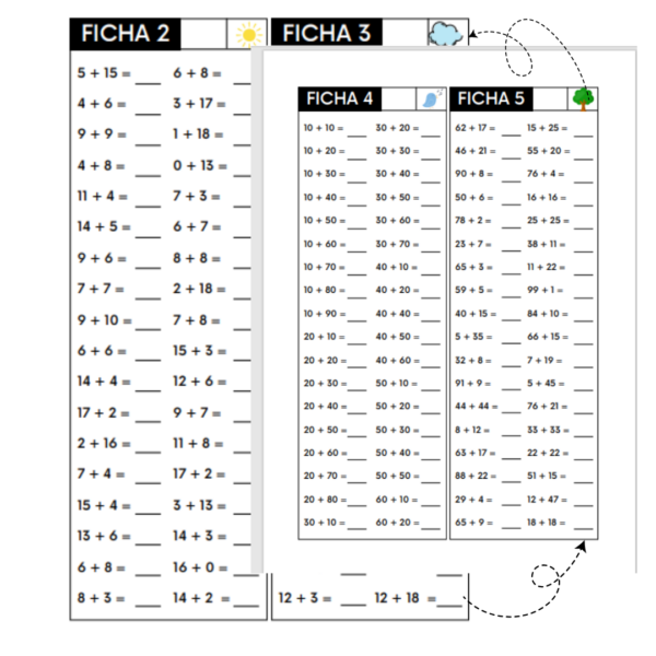 Fichas de cálculo mental para resolver adiciones