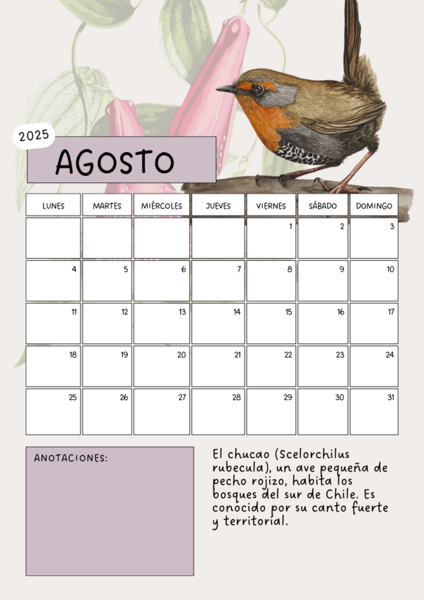 En este recurso encontrarás un calendario a color en formato A4 que incluye diferentes especies nativas de Chile.