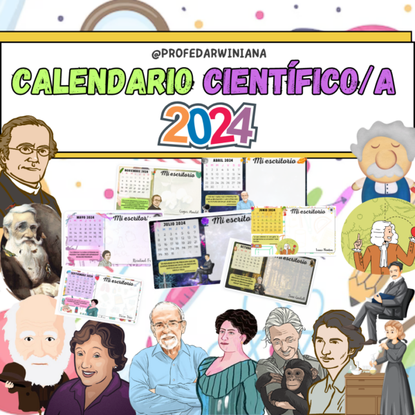 Calendario de científicos y científicas que han influido en la historia de la ciencia que lo puedes utilizar en tu notebooks, PC o en tu aula de clases.
