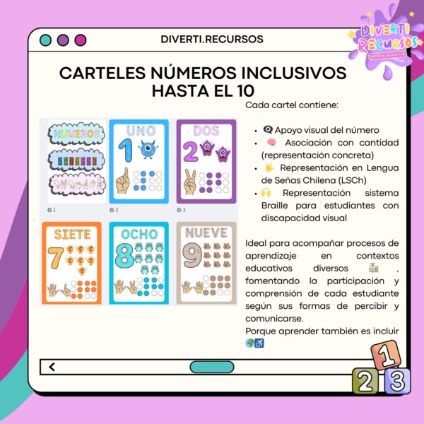 Presentamos nuestros Carteles Inclusivos del 1 al 10, un material didáctico ideal para salas de clases diversas y accesibles.