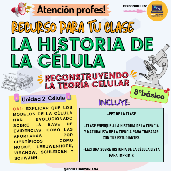 Es una clase para abordar la Unidad 2: Célula, en donde debes introducir el contenido con la historia de la célula, para ello encontrarás que esta clase tiene un enfoque con la historia de la ciencia y naturaleza de la ciencia. Además va adjunto lectura de historia de la célula para trabajar con tus estudiantes el cómo se construyó el conocimiento científico de lo que conocemos sobre las “Células”