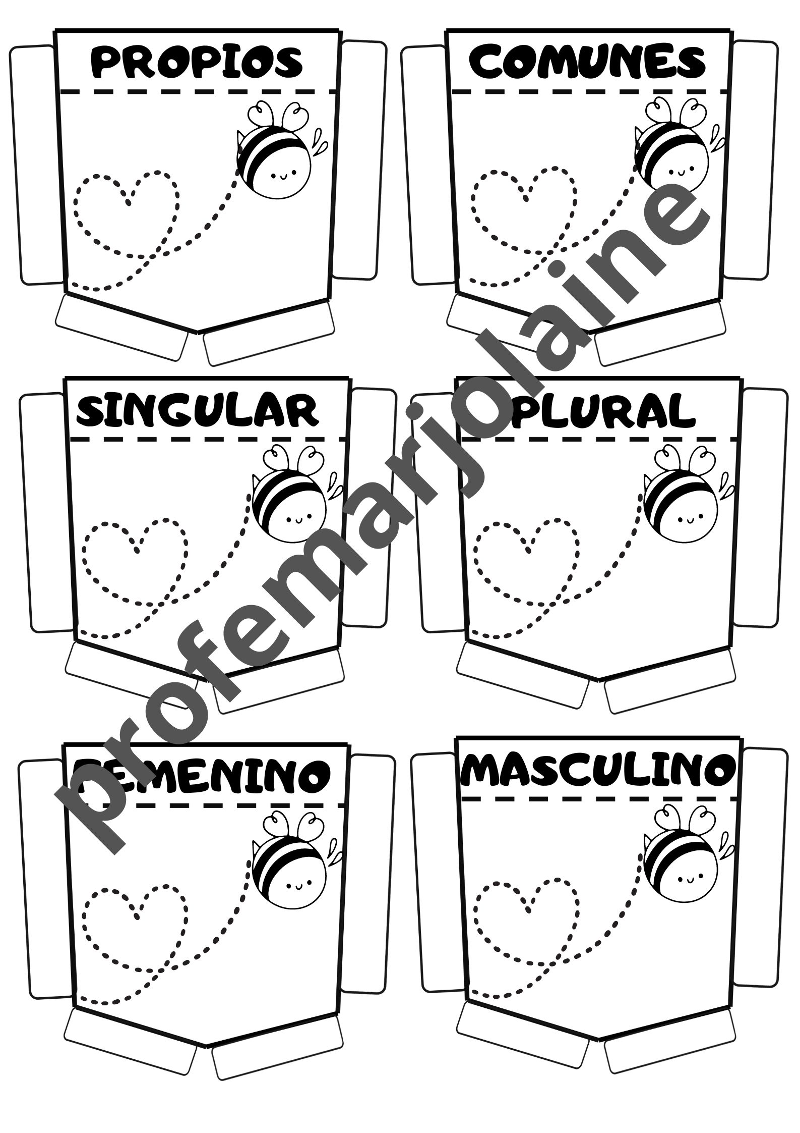 Incluye sustantivos para clasificar y los bolsillos para guárdalos.