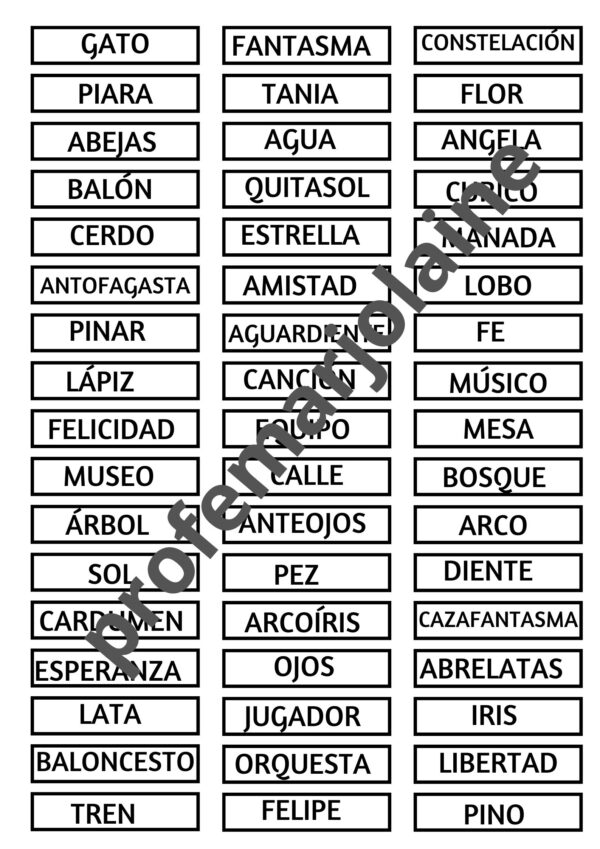 51 sustantivos para que tus alumnos recorten y clasifiquen.