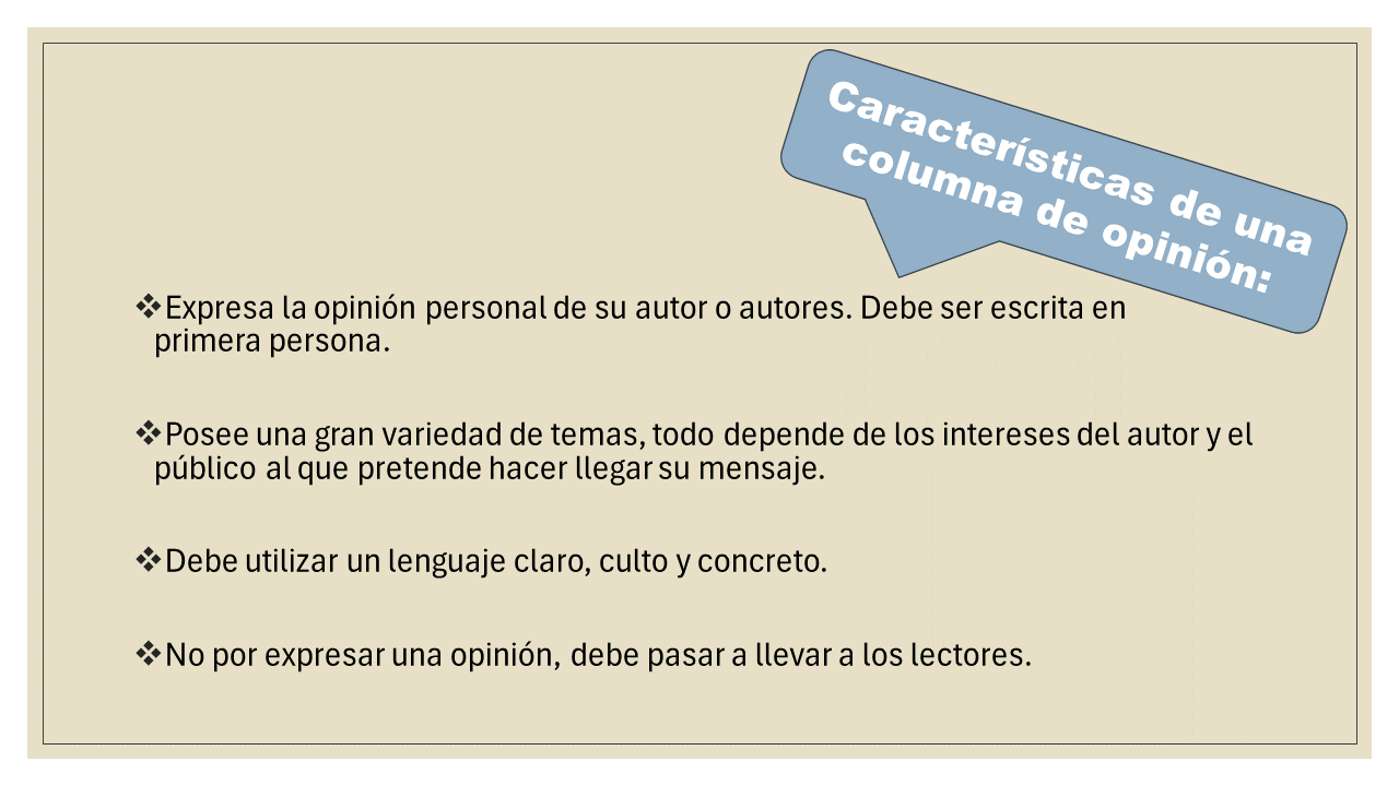 PPT y pauta de escritura para escribir una columna de opinión. Material elaborado para 7° básico.