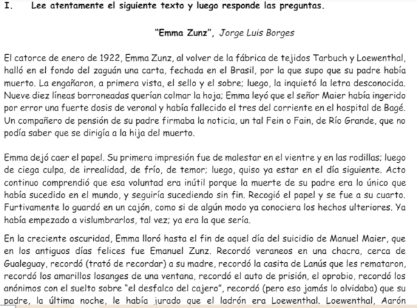 Comprensión Lectora “Emma Zunz” Jorge Luis Borges